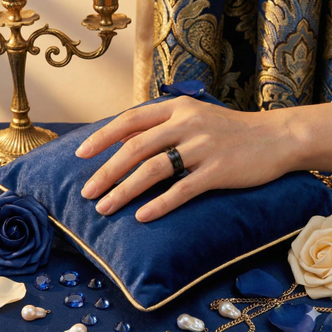 Line In Black - alianças de tungstênio com acabamento preto fosco