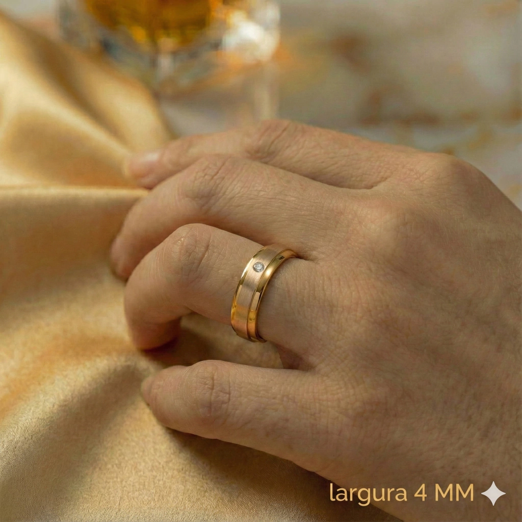 Rose - aliança magnetizada a ouro 18k com listra cor rose fosco
